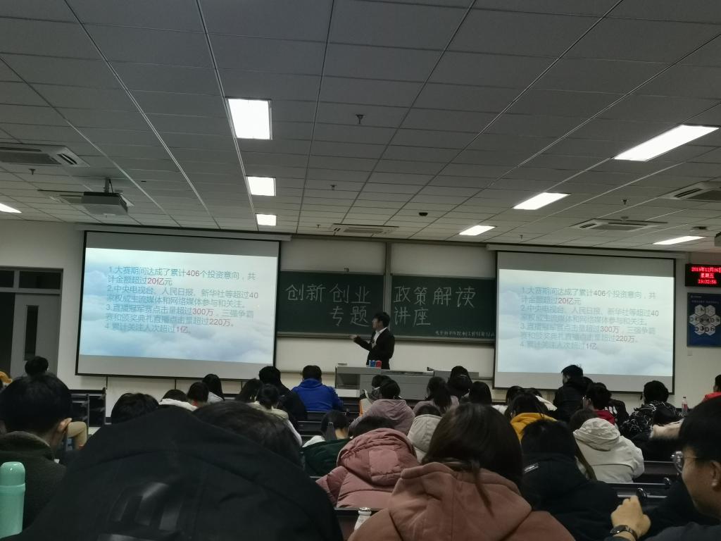 按照3044永利集团官网第一届创新创业活动月安排,永利集团官网于12月6日和12月10日举办两场创新创业政策解读专题讲座。由永利集团官网创新创业指导教师高强主讲,来自全校10个学院的294名学生聆听了此次讲座。