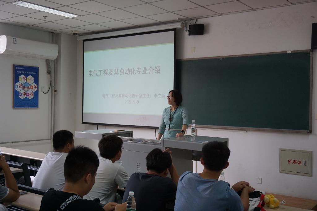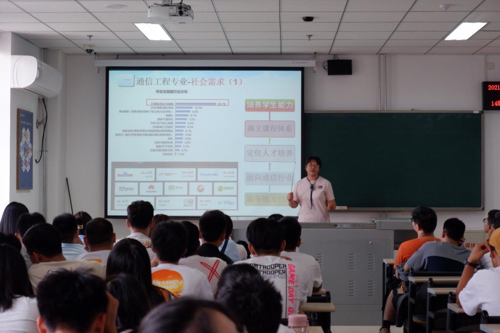 9月9日下午,永利集团官网于举行2021级新生学院和专业介绍、学业规划教育。电气专业教研室主任李立新、测控专业教研室主任吴燕雄、通信专业教研室主任贺秀玲三位老师分别为相应专业新生作学业规划教育讲座。
