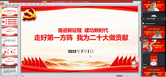 为热烈庆祝建党101周年,喜迎党的二十大胜利召开,电控学院党总支积极落实应急管理大学(筹)临时党委部署,于20227月1日上午,学院党总支书记贾甚杰、院长蔡建羡以腾讯会议方式围绕走好第一方阵 我为二十大作贡献分别讲专题党课。学院全体师生党员聆听党课。