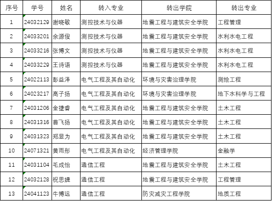 依据《应急管理大学教务处筹备组文件》(教务处筹〔2025〕31号)、《3044永利集团本科生转专业管理办法》(防科教〔2019〕32号)等相关规定,经学生本人提出申请、转入学院对学生成绩进行审核、面试等环节予以综合评定,结合学院党政联席会讨论决议,拟批准以下学生的转专业申请,现予以公示。