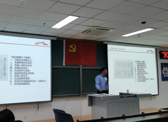 首先,都斌向大家介绍了中国人民抗日战争的概况,并就中国人民抗日战争的正义性质、伟大作用和历史意义及取得胜利的根本原因等八个方面展开了深刻讲解。同时,都斌指出中国共产党在抗日战争中起到的重大作用,其带领下的人民是抗日战争的民族先锋和中流砥柱。最后,以习近平总书记“鉴往事,知来者”的重要讲话结束了本次主题活动。
