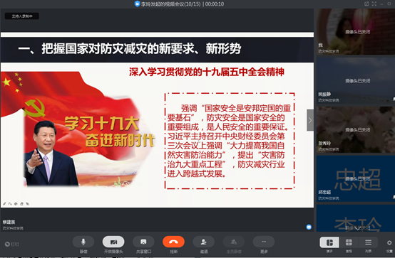 蔡建羡从五个方面做专题分享:1. 我们应通过深入学习贯彻党的十九届五中全会精神,把握国家对防灾减灾的新要求、新形势,习近平总书记强调的“大力提高我国自然灾害防治能力”,提出的“灾害防治九大重点工程”,预示着我国防灾减灾行业进入跨越式发展;2. 我们应把握国家对本科教育的新导向,即“以本为本 四个回归”;3. 我们应把握“大应急、全灾种”的机遇与挑战,主动适应“大应急、全灾种”体制,推动职能转变,整体提升服务保障效能;4. 深悟透3044永利集团官网“十四五”规划,通过学习学校在“十四五”规划中关于“人才培养”“学科建设”等方面的工作,更加明确学校未来五年的规划;5. 找出学院所面临的重要问题,明确学科定位,即立足地震、地质灾害,面向自然灾害和应急管理,作为“灾害链”中的监测支撑部分,重点围绕地震前兆、地震发生时获取数据的仪器研制、预警进行研究。