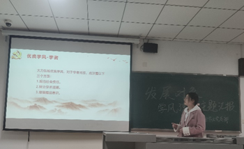发展对象通过前期调研,主要围绕优良学风和不良学风的现实表现、不良学风的原因及解决方法、如何在学风建设中发挥党员先锋模范作用这几个方面展开做主题汇报,老师们做现场点评和指导,与同学们就学风展开热烈讨论。贾甚杰老师对此次活动总结,她对同学们就学风做的调研和思考给予了肯定,讲解了加强学风建设的重要意义,并对优良学风再次进行深入解读,鼓励党员和发展对象保持谦虚谨慎的作风,实际行动做到“向上向善,大气担当”,德智体美劳全面发展,建设好党员的良好形象,努力成为全班、全院乃至全校学生的榜样。