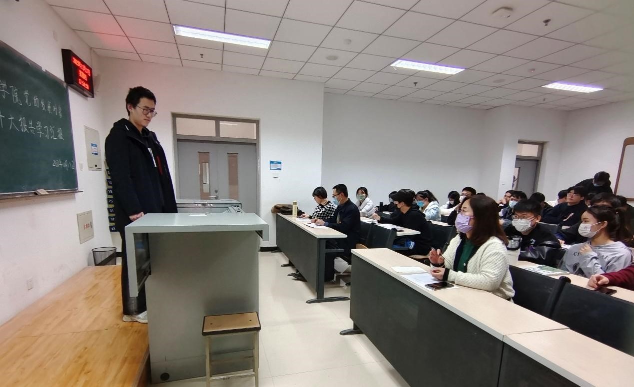 贾甚杰聆听了十组的学习汇报后,对全体党员发展对象的学习汇报给予肯定,并指出要更好把学习党的二十大精神与自身的学习发展结合起来,基础在“学”——要学明白,重点在“思”——要深入思考,关键在“悟”——要深刻领悟,落点在“行”——要在学习工作生活中高标准、严要求,提升品德修养,增长学识本领,德智体美劳全面发展。作为新时代青年,要认真学习党史、新中国史、改革开放史、社会主义发展史、中华民族发展史,结合时代赋予青年的使命,踔厉奋发,笃行不怠,为全面建成社会主义现代化强国、实现第二个百年奋斗目标,以中国式现代化全面推进中华民族伟大复兴贡献自己的青春力量。