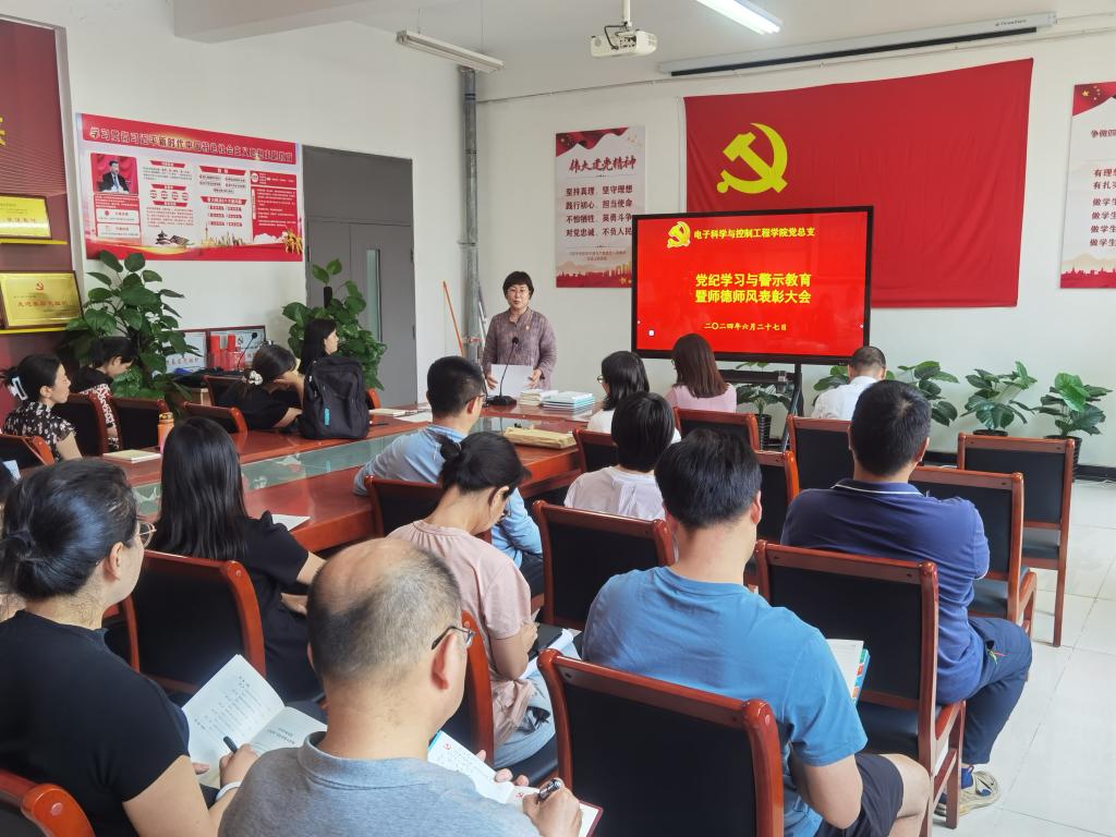 在建党103周年之际,为深入开展党纪学习教育与警示教育,进一步加强师德师风建设,促进“四强”党支部和“四好”党员的作用发挥,永利集团官网党总支于6月27日下午在长庚楼420召开党纪学习教育与警示教育暨师德师风表彰大会,学院领导班子及教工党员参加会议。会议由学院党总支书记贾甚杰主持。