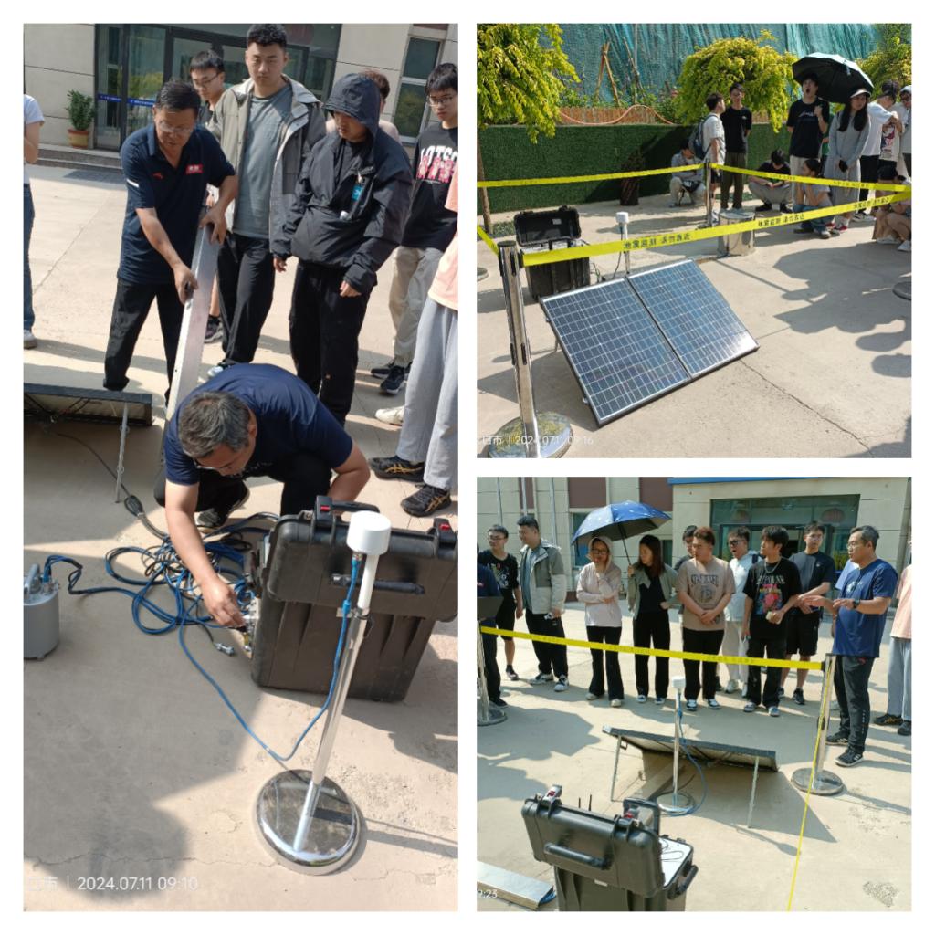 在张家口中心台站老师们的带领下,同学们到户外进行流动地震台站的架设。老师们首先讲解了流动台站架设的必要性及位置特点,随后演示了架台操作,同学们积极协助老师进行操作。演练中,同学们了解了地震仪器的安装过程以及在户外操作的难度,不仅加深了对地震仪器的认识,也锻炼了工程实践能力。