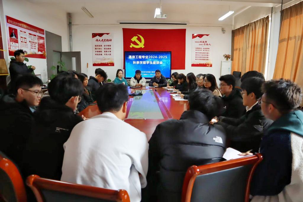 为全面了解本学期的教学与学习情况,解决学生学业上的问题,提高学院教学质量,通信工程专业于11月18日召开期中座谈会,通信工程各专业课老师和本专业各年级学生代表参加会议,会议由教研室主任贺秀玲主持。