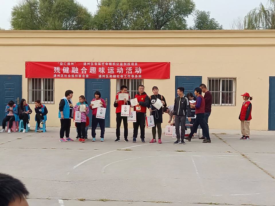 为增强残疾孩子的健康、增加对残疾孩子的关爱,通州区社会组织联合会携手新知行老师、新知行同学、通州区心智障碍者及其家长和各学校志愿者于2018年10月14日14:30在辅仁医院篮球场开展了残健融合趣味运动活动。