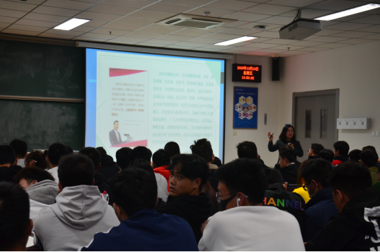 贾甚杰老师首先播放了“优秀毕业生讲专业”的系列视频,通过优秀校友的成功事迹激发同学们对未来学业生活开展规划设想。