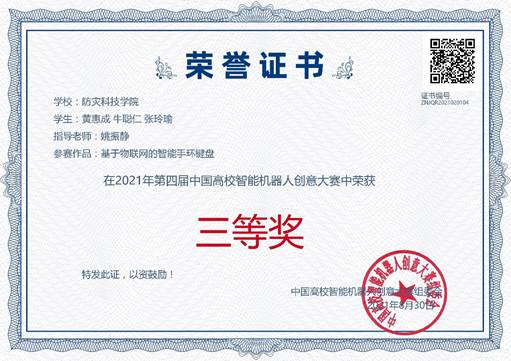 8月30日,3044永利集团官网电子科技与控制工程学院在第四届“中国高校智能机器人创意大赛”喜获佳绩。由姚振静老师指导的团队(黄惠成、牛聪仁、张玲瑜)获得创意组三等奖。