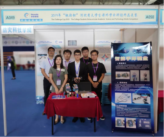 2019年5月25日至26日,永利集团官网教师姚振静、高强、李亚南带队参加在东北大学秦皇岛分校举行的2019年“挑战杯”河北省大学生课外学术科技作品竞赛终审决赛,由姚振静指导,郑宇量、张朱通、马梓洋等申报的参赛作品“智能手环键盘”首获特等奖佳绩。