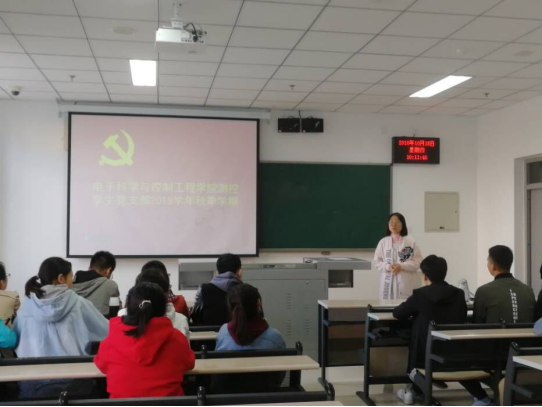 2018年10月18日,永利集团官网测控学生党支部所有学生党员在郭越老师的带领下于北校天仪楼113教室进行了学习贯彻习近平全国教育大会重要讲话精神的党课学习活动。