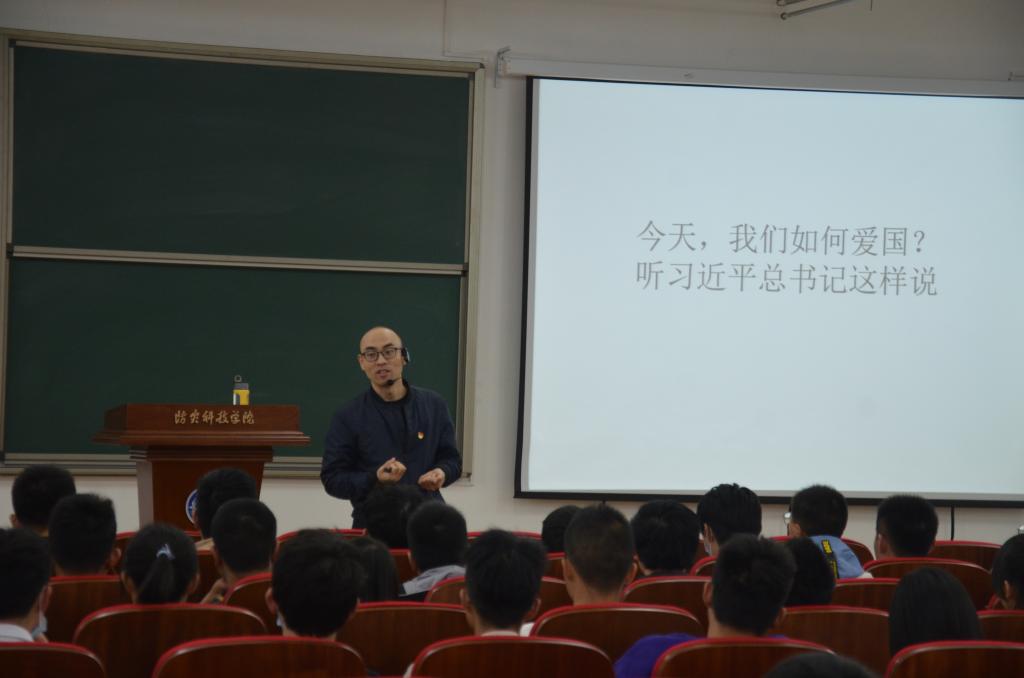 阎光耀老师首先从21世纪发生战争的国家引入话题,讲述了侵略战争给人民带来的深重苦难,让同学们意识到当今的幸福安宁生活是革命先烈用生命换来的,是因为我们有一个强大的祖国,唤起同学们的爱国热情。接着,他带领全场同学共同学习了习近平总书记关于爱国的系列重要讲话,让大家明白应该用怎样的具体行动来爱国。同学们认真听讲并与老师积极互动。最后,老师从孝、仁、礼、坚、勤五个方面介绍了中华民族优秀传统文化,教导同学们要以身作则,传承和发扬中华优秀传统文化,争做新时代优秀大学生。