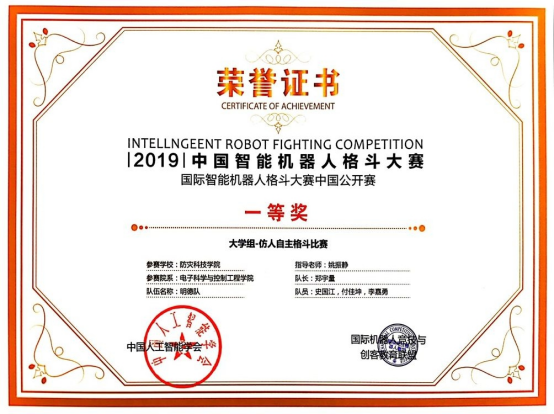 在学习方面,他秉持着“吾生也有涯,而学也无涯”的观念与态度,明白学习的重要性。有着良好的学习方法,了解课堂的重要性,在大一大二时就给了自己一个要求:不懈怠每一节课 ,上好每一节课!懂得利用课余时间去学习,能够非常合理的利用课下资源,利用网络上的资源去学习,勤奋好学,有着非常好的自我学习能力。也因此他的成绩一直都名列前茅。也正是因为有着良好的学习习惯,优异的自我学习能力 ,才使他能荣获今年的三好学生称号 。此外,不仅如此他还在2019年华北五省机器人大赛河北赛区中荣获一等奖 ,在2019年的中国智能机器人格斗大赛中斩获一等奖。