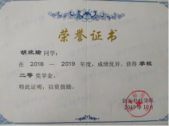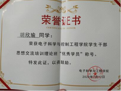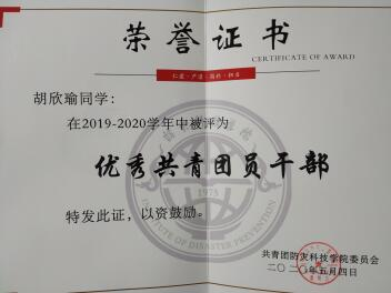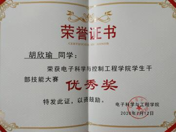 在学习上,她勤奋好学,她的努力使她获得了2018-2019年度学校二等奖学金,2019-2020年度优秀共青团员干部。在永利集团官网学生干部技能大赛中获得优秀奖,在永利集团官网学生干部思想交流培训理论班获得“优秀学员”称号。