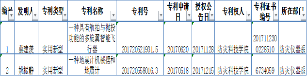 防灾仪器系2017年计算机软件著作权统计汇总表